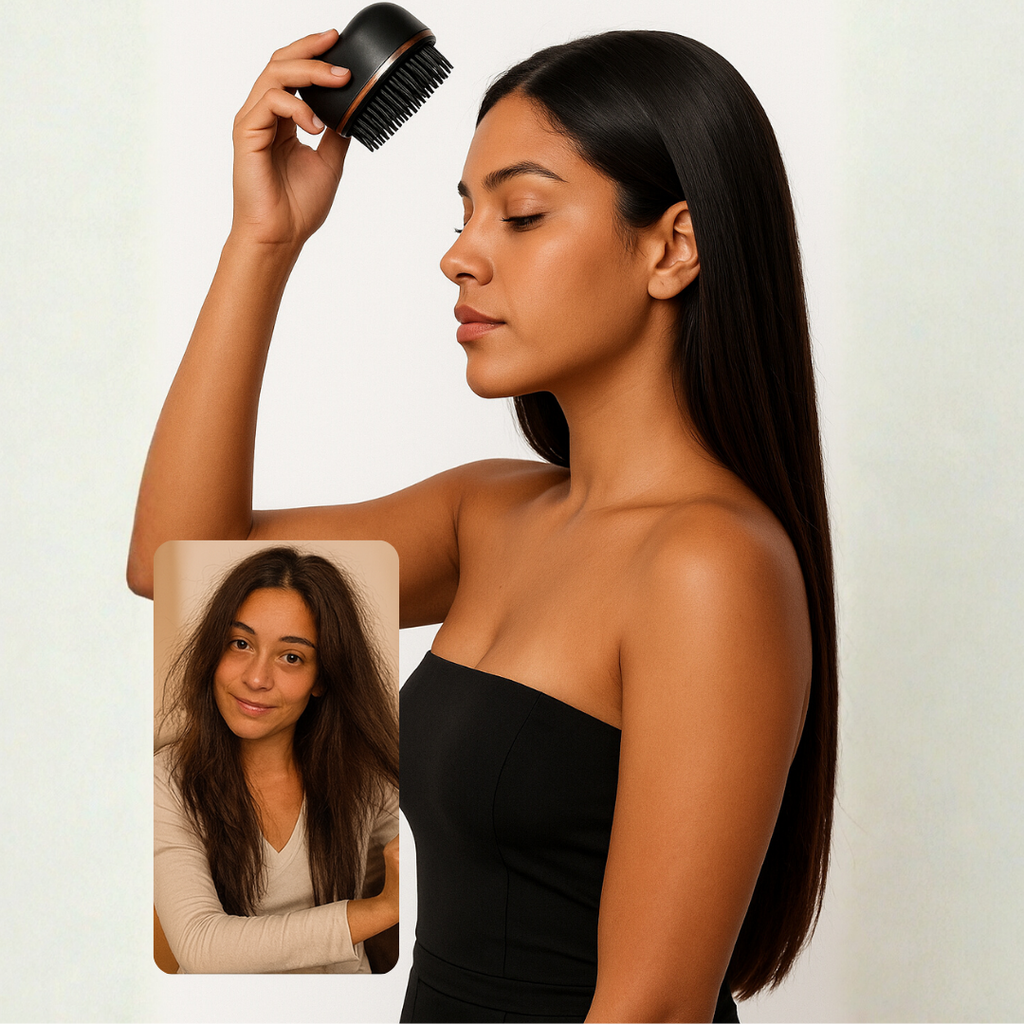 Com a Escova Modeladora Sem Fio, você conquista cabelos alinhados, macios e com brilho natural em poucos segundos — sem danificar os fios.